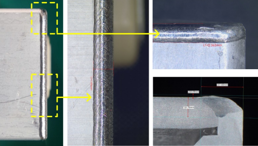 从焊接效果来看,焊缝直边和转角表面均光滑饱满,焊缝熔深稳定,平均焊接速度可达300mm/s以上。基于此,深圳中基开发了高速激光连续侧焊模块和刀片电池顶盖高速激光侧边焊接机,焊接效率较常规分段焊接机提升3-5倍以上。