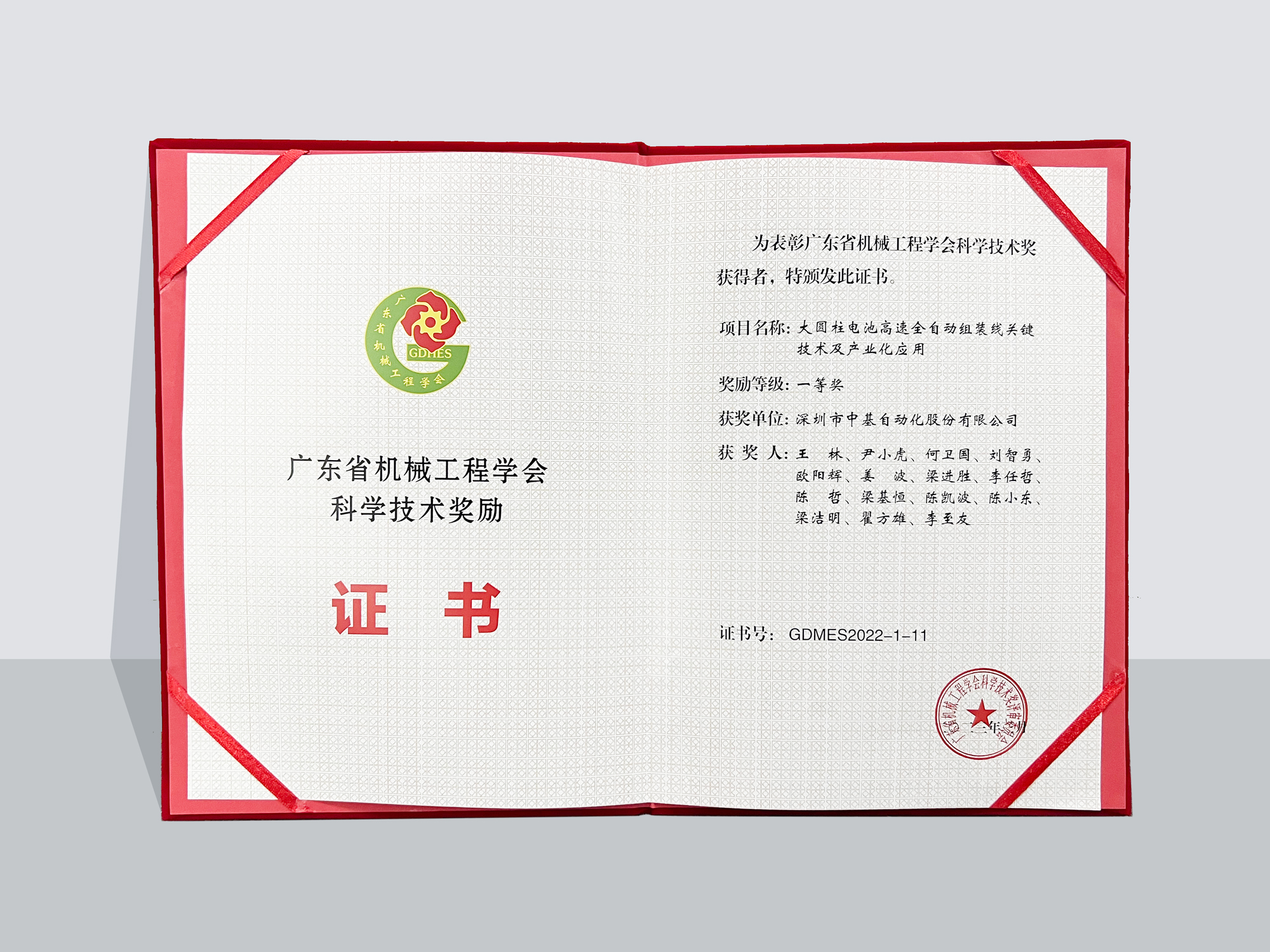 深圳中基申报的《大圆柱电池高速全自动组装线关键技术及产业化应用》项目同时荣获“广东省机械工程学会科技奖一等奖”、“广东省机械工业科技奖一等奖”。