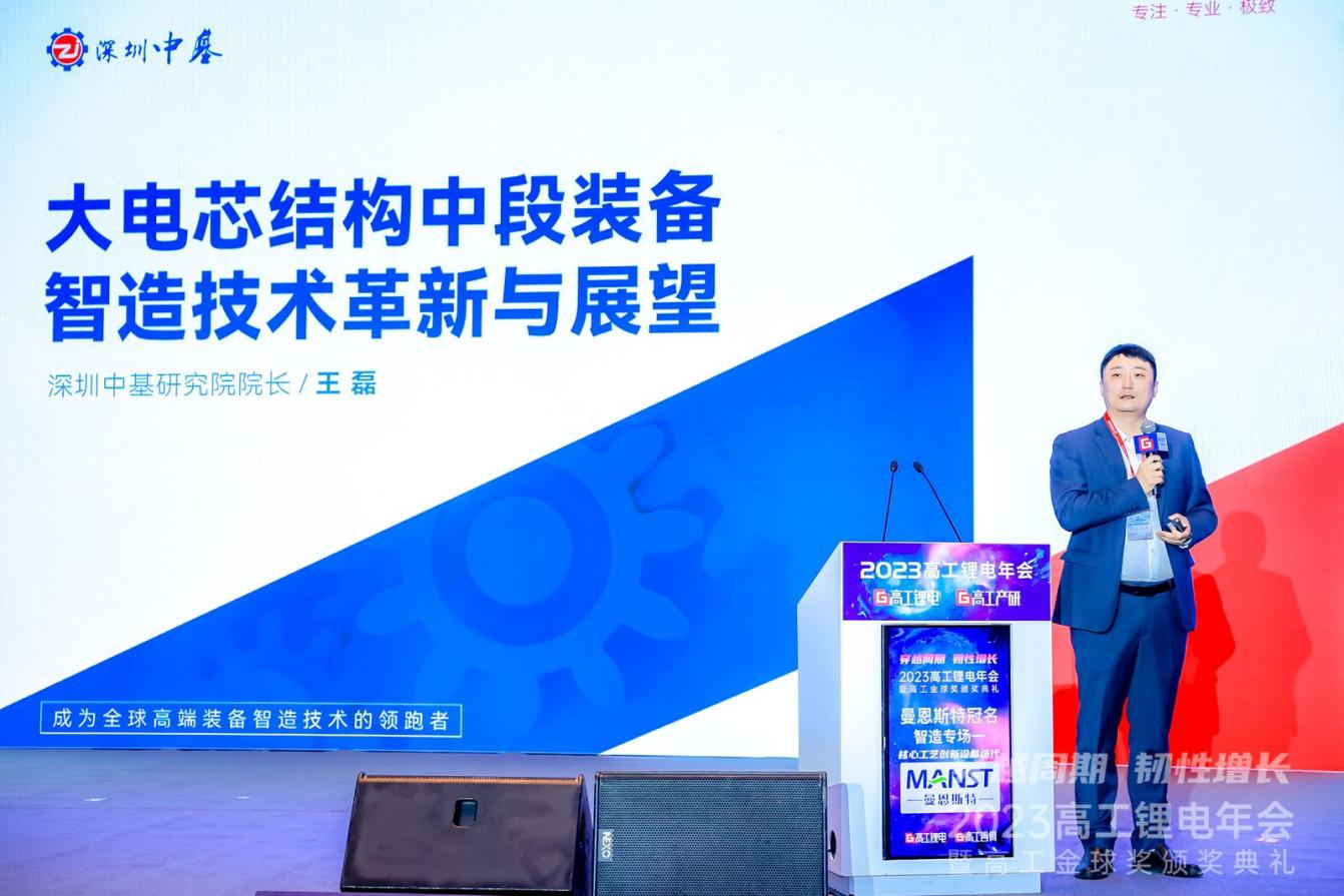 在本次会议的圆桌对话环节中,深圳市中基自动化股份有限公司研究院院长王磊博士受邀出席,与国轩高科、亿纬锂能、比克电池、利元亨、创明新能源等产业链领军人士共同探讨大圆柱电池市场的新机遇和发展方向。