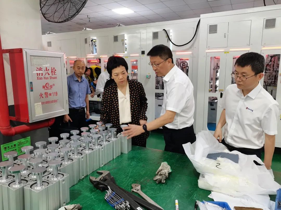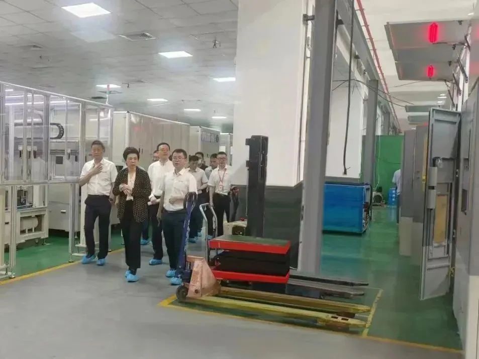 调研座谈会开始前,宝安区委常委、区政府党组副书记、常务副区长孟锦锦一行在何卫国总经理的陪同下参观了深圳中基的生产车间,详细了解深圳中基的产品研发和生产状况。