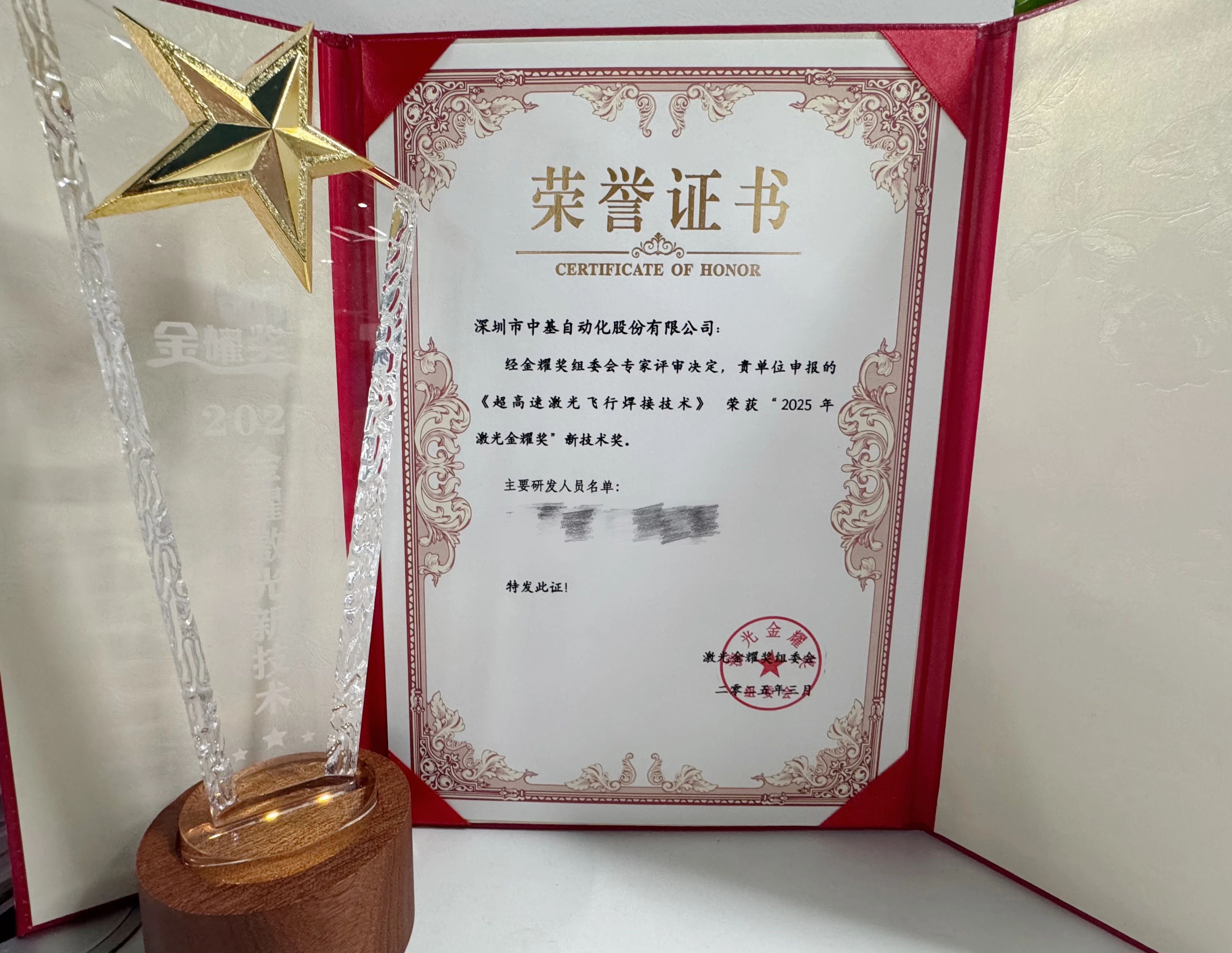 近日,深圳中基凭借其自主研发的"超高速激光飞行焊接技术"成功斩获"2025激光金耀奖"新技术奖,彰显了企业在激光应用领域的技术创新实力。据悉,"激光金耀奖"是激光行业最具影响力和权威性的奖项之一,由行业内多家单位共同发起、中国光学学会激光加工委员会大力支持,致力于发掘具有前瞻性、创新性和引领性的激光新技术、新产品和新应用,推动"光"制造技术与各行业的深度融合。